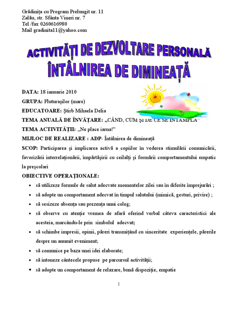 Intalnirea de dimineata invatamant prescolar exemple. Sunt exemple pe care le voi folosi şi eu în activităţi voi ţine legătura cu tine. Intalnirea de dimineata calendarul naturii. Silvia borţeanu rodica brănişteanu silvia breben. Prima pagină învăţământ preşcolar activităţi de dezvoltare personală adp proiecte tematice model intalnirea de dimineata model intalnirea de dimineata 7 aprilie 2014 11 35.