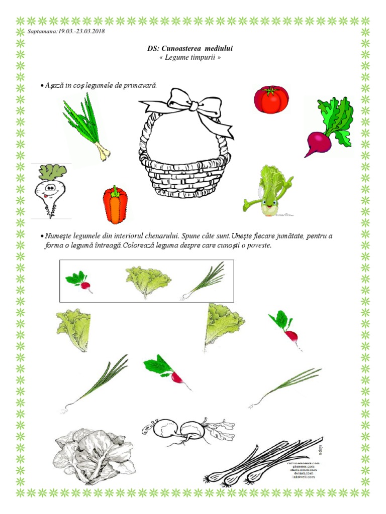 Domeniul stiinta cunoasterea mediului nivel ii. 0 stele 0 review uri. Legume timpurii fisa de lucru. See more ideas about grădiniță preșcolari fișe de lucru.