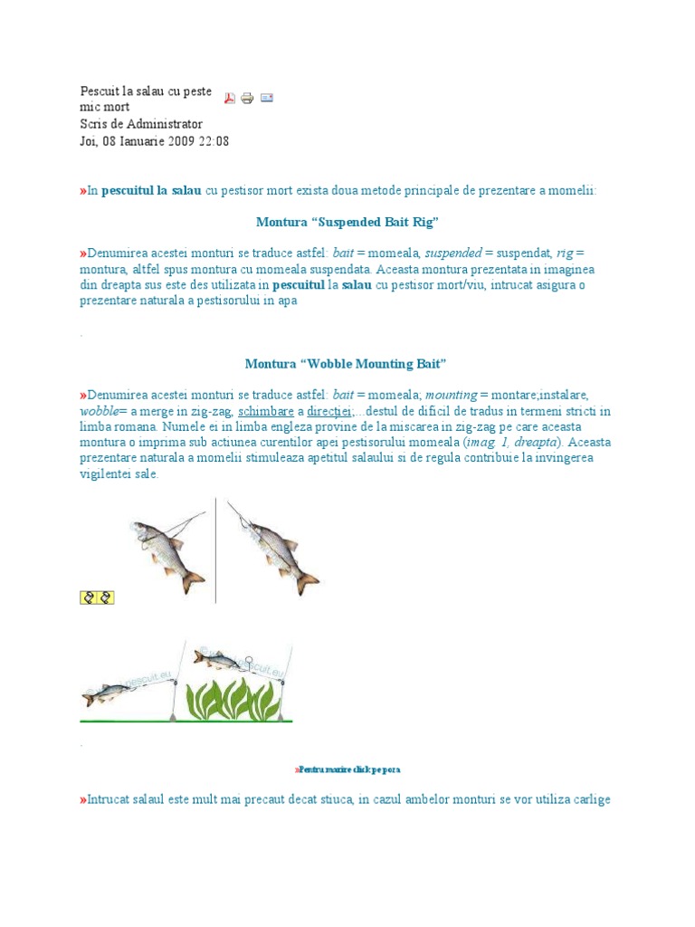 In functie de conditile de pescuit fiecare are avantajele si dezavantajele sale. Montura cu pestisor viu pentru salau spre deosebire de pescuitul salaului cu momeli artificiale naluci pentru a lansa o montura cu pestisor viu va trebuie o lanseta mai lunga intre 2 5 si 3 3 m cu o greutate la lansare intre 30 si 50 g. Mai contine baza de date cu informatii despre pescuit harti online galerie foto anunturi. Crapul chinezesc specii.