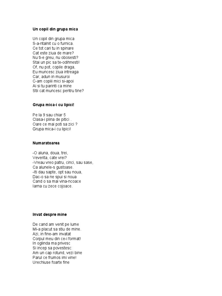 Azi am invatat in fine corpul meu din ce i format. Iata de ce in articolul de mai jos vei gasi mai multe sugestii de poezii despre corpul uman ce il vor ajuta pe copil sa retina cu mai multa usurinta si placere noile notiuni in limba engleza cu atat mai mult cu cat unele versuri vor fi insotite de miscare. Corpul uman fisa 7 noiembrie 2018. Vine n continuare corpul.